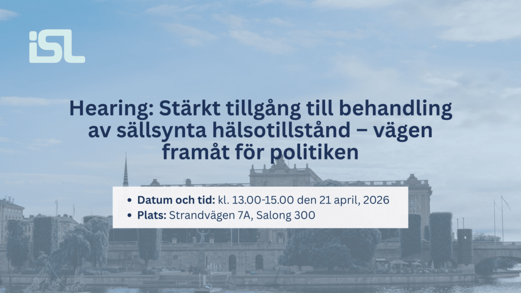 Kommissionen för Innovativa Särläkemedel bjuder den 21 april in till en politisk hearing med riksdagspartierna om inriktningen för politiken kring sällsynta hälsotillstånd. Under en paneldiskussion får partierna redogöra för sin syn på nuläget och sina prioriteringar framåt: Hur bedömer de situationen i dag, och vilka konkreta reformer är de beredda att driva för att stärka tillgången till särläkemedel under nästa mandatperiod?